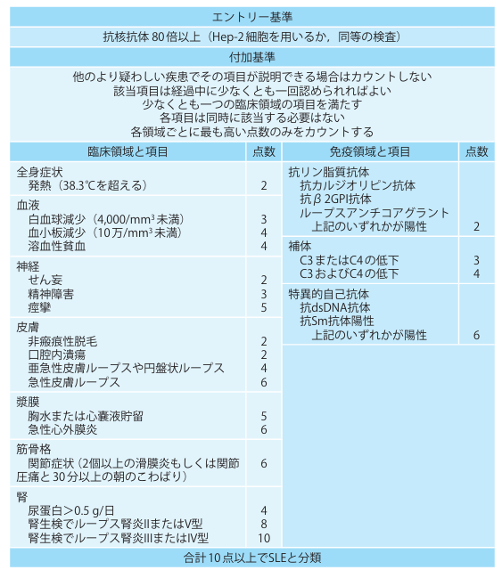 検査結果は、国際的なSLICC(Systemic Lupus International Collaborating Clinic )分類基準に基づき、合計10点以上でSLEと判断されます。