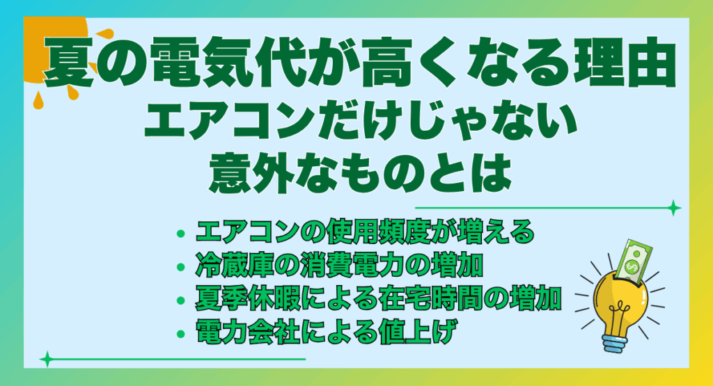 夏に電気代が高くなるのは、単にエアコンを使う時間が増えるからではありません。