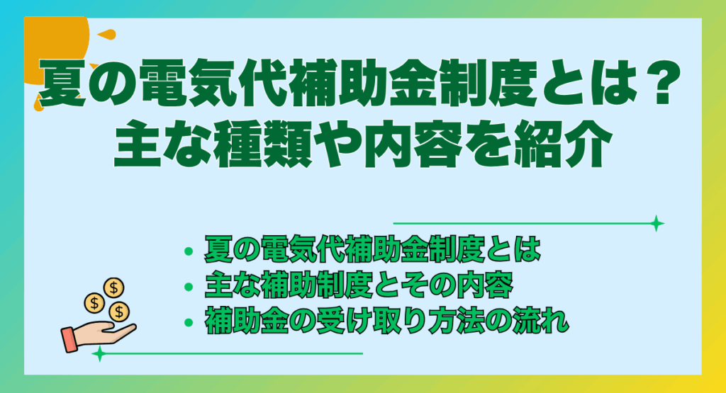 この章では、夏に活用できる電気代補助制度の内容や、対象となる条件、申請の流れまでを分かりやすく解説します。