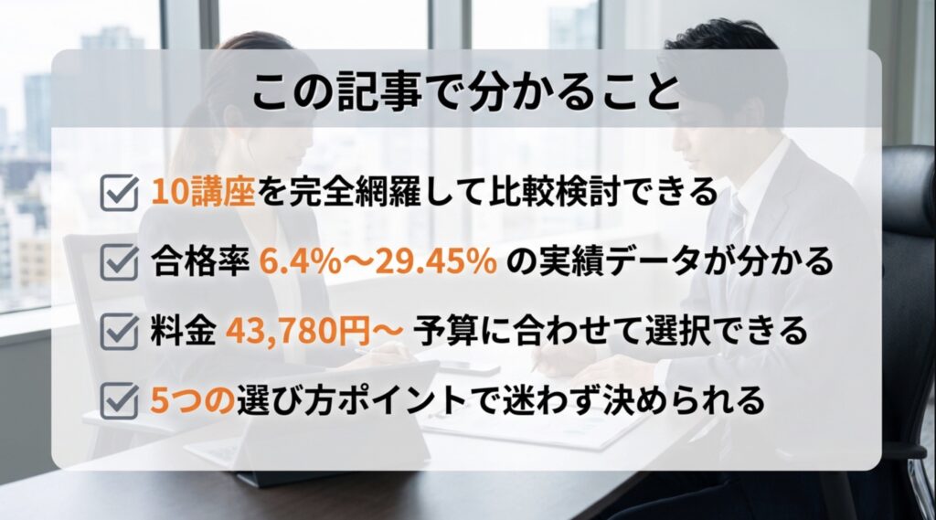 この章では、合格率・費用・サポート体制・口コミ評価などをもとに、信頼性の高い通信講座を厳選して紹介します。