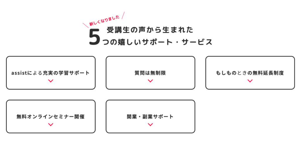 「合格すれば受講料が返ってくる」という実質無料の仕組みがあるためです。 - 特典の内容