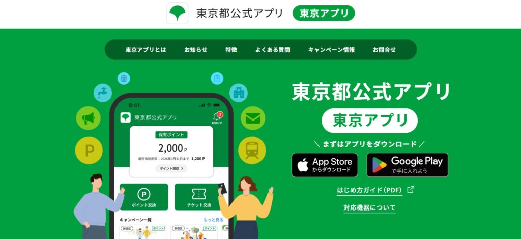 東京アプリの大きな魅力は、ポイントがもらえるキャンペーンを活用できるだけでなく、生活に関わる行政サービスへスムーズにつながる仕組みを備えている点にあります。