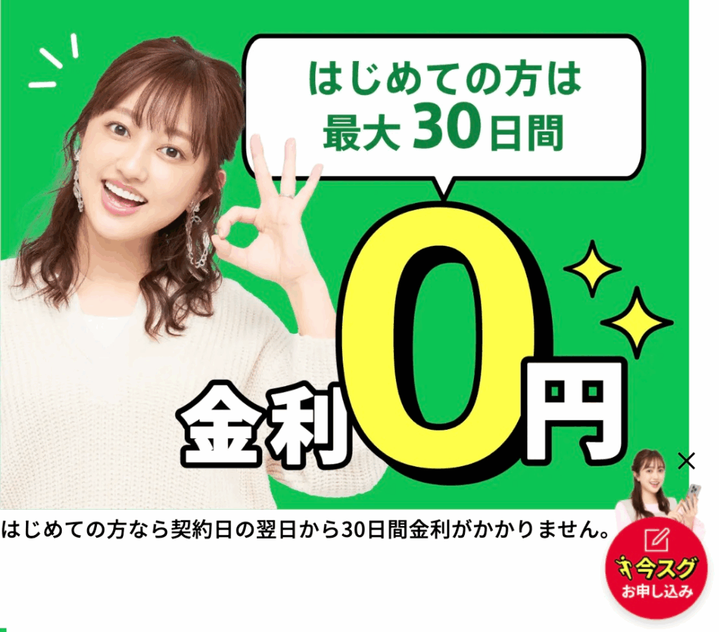 初めての利用であれば最大30日間金利0円のサービスがあり、平日14時までの申し込みであれば即日融資にも対応しています。