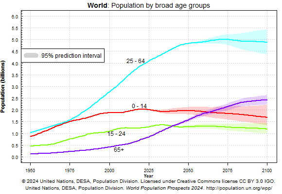 人口に占める高齢者の割合は、日本だけでなく世界でも高まっています。この現状に対して国連「世界人口推計 2024年版」では、テクノロジーを活用し、生涯学習の機会を増やすことで、あらゆる年齢層の生産性を向上させることを課題としています。