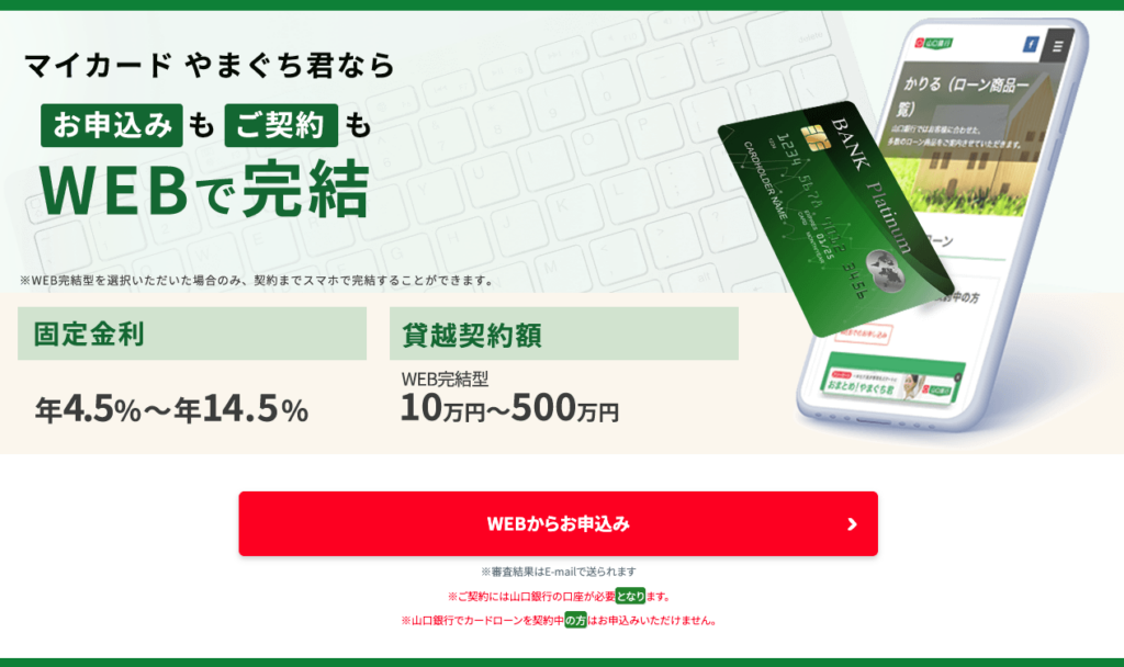 山口銀行の普通預金口座を保有し、現住所または勤務先が営業エリア内であること等の条件もあります。