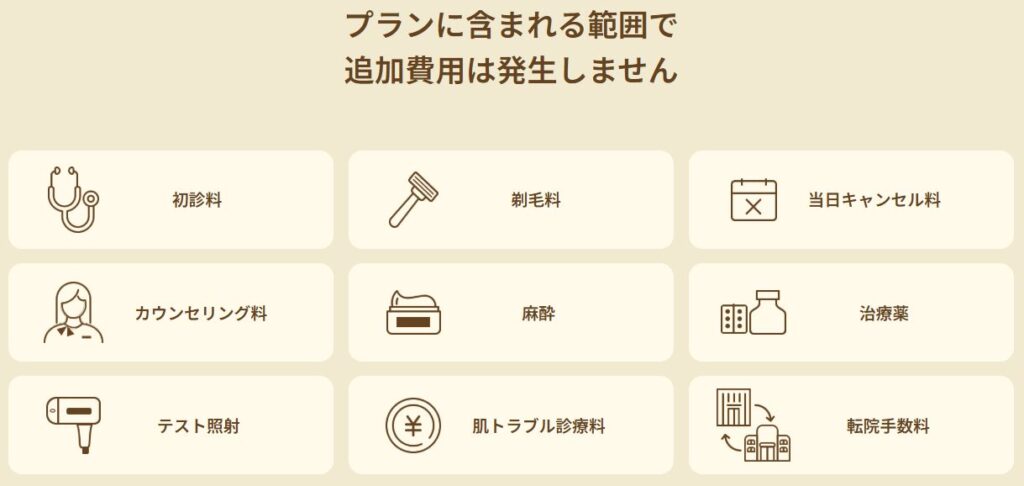 無料オプションも豊富で、麻酔代やシェービング代、テスト照射などの追加料金が全て0円なのも大きな魅力です。